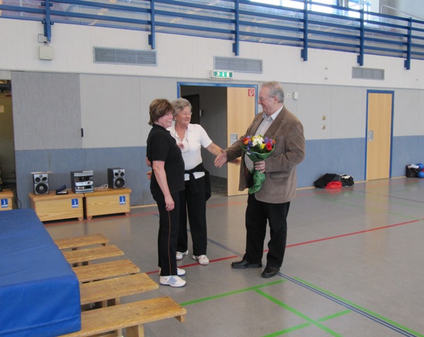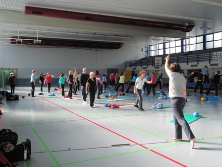 Der Sportkreis Rheingau-Taunus veranstaltete am 16.3.2013 einen Lehrgang für Freizeit- und Breitensport zum Thema "Pilates im Gesundheitssport - vielfältig und effektiv". Referentin Andrea Flach-Meyerer führte durch den gut besuchten Kurs. Pilates trainiert den Körper von innen nach außen. Die Stabilisierung der Körpermitte ist zentraler Punkt, gefolgt von einer idealen Ausrichtung der Gelenke. Bei den Übungen wurde den Teilnehmern auch deutlich, daß Konzentration und psychische Kraft für deren Durchführung notwendig ist. Auch der Vorsitzende Manfred Schmidt schaute vorbei und begrüßte die Teilnehmerinnen und Teilnehmer. Er bedankte sich bei Christa Porten, der Organisatorin des Lehrgangs. Fränzi Scholz, die nach einer längeren Erkrankung Christa Porten wieder unterstützt bekam einen Blumenstrauß überreicht.