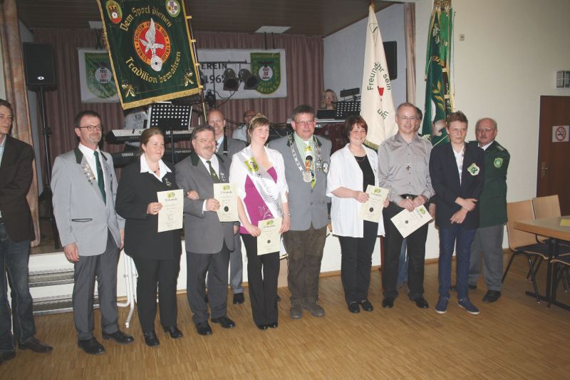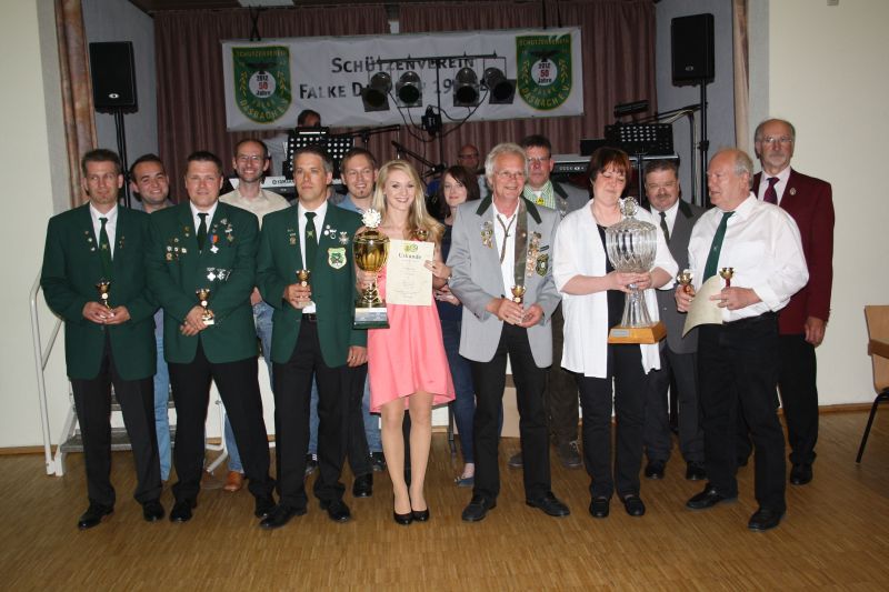 Schützenmajestäten gaben sich die Ehre beim Kreisschützenball. Eine gelungene Veranstaltung war einmal mehr der traditionelle Kreisschützenball des Schützenkreis 73, der dieses mal im Dorfgemeinschaftshaus Dasbach über die Bühne ging. Kreisschützenmeister Hartmut Guckes begrüßte die Gäste und bedankte sich beim ausrichtenden Verein, dem Schützenverein Falke Dasbach 1962 e.V. sowie den anwesenden Ehrengästen für Ihr kommen. Nach den Grußworten von Bürgermeister Gerhard Krum und dem Vorsitzenden des Sportkreises Rheingau-Taunus, Hr. Manfred Schmidt, ging es schon gleich zur den ersten Ehrungen des Abends. Die erfolgreichsten Sportler des vergangenen Jahres wurden durch den Kreisvorstand für Ihre Leistungen mit Medaillen, Urkunden und Pokalen ausgezeichnet. Aufgelockert wurde der offizielle Teil durch Tanzmusik der Gruppe Sunshine Express, den Jagdhornbläsern aus Steinfischbach sowie einer Tanzvorführung junger Damen, der Tanzschule Bier. Mit Spannung blickte das Publikum dann der Ausrufung des Kreisschützenkönigs und seinem Gefolge entgegen. Schützenkönig wurde Hartmut Guckes mit Königin Bianca Krieger, 1. Dame Natascha Wagner, 1. Ritter Michael Eismann, 2. Dame Tanja Erlenbach, 2. Ritter Jürgen Hölzel. Die Stimmung war später auf dem Höhepunkt, als das frisch gekürte Königspaar zum Königswalzer auf das Tanzparkett ging und den Tanz eröffnete. In der voll besetzten Halle feierten die Schützen bis spät in die Nacht zu Tanzmusik und in der Sektbar.