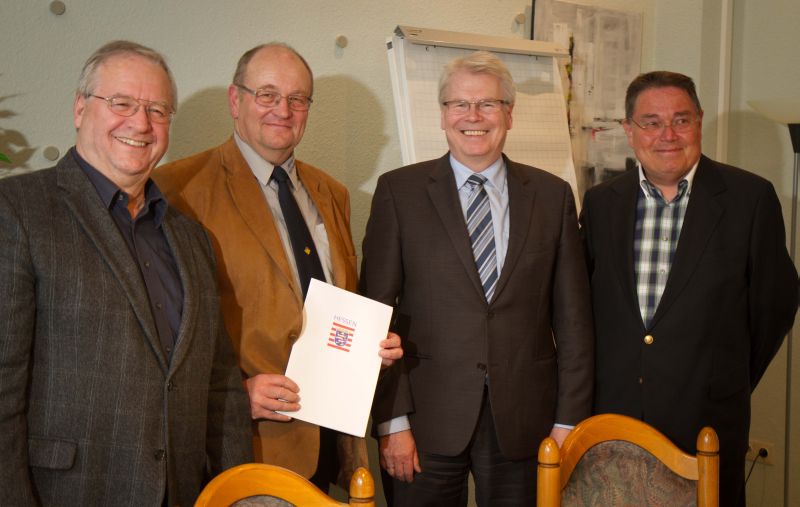 v.l.n.r.: Manfred Schmidt, Horst Bingel (Vors. MSC Michelbacher Hütte), Staatssekretär im Innenministerium Werner Koch, Lothar Becker (Gemeinde Aarbergen)