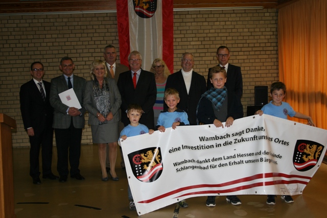 Unter Teilnahme der Staatssekretäre Koch und Müller-Klepper feierte die SG 1956 Wambach e.V. die Übergabe des Fördermittelbescheides über Euro 50.000,00. Ein wesentlicher Baustein in der Sanierung des Bürgerhauses Wambach – der Sportstätte des Vereins. Von Anfang an dabei der Sportkreisvorsitzende Manfred Schmidt, der die Belange des SG wie immer stark unterstützte. Mit der Sanierung des Bürgerhauses ist die Zukunft des Vereins, der derzeit wie Phoenix aus der Asche auferstanden ist, gesichert.