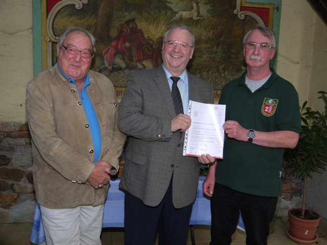 v.l. Horst Schneider (ehemaliger Vorsitzender) Manfred Schmidt ( SK Vorsitzender) Egon Falkenstein (2. Vorsitzender). Bild: Manfred Hambrecht