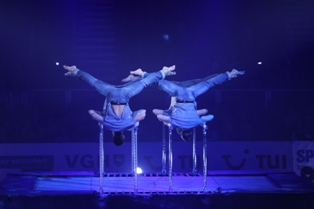 Was wäre die Olympische Ballnacht ohne Luftakrobatik? In diesem Jahr werden die Athletinnen Olga Boyko und Oksana Demydenko diesen Part im Programm gestalten. Scheinbar mühe- und schwerelos zeigen die zwei Sportlerinnen in sieben Metern Höhe eine ungewöhnliche Tuchakrobatik.