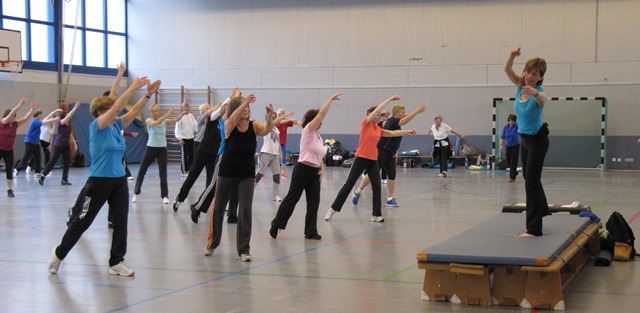 Die Auftaktveranstaltung für 2015 stand unter dem Motto „ fit und aktiv ein Leben lang „. Aufgrund der immer älter werdenden Bevölkerung, und somit auch der Vereinsmitglieder, sind die Übungsleiter auf neue Ideen und Anregungen für die Sportstunden mit älteren Teilnehmern angewiesen. Die Referentin, Andrea Flach-Meyerer, hat es wieder einmal verstanden diese Thematik den anwesenden ÜL zu vermitteln. Nicht nur Theorie sondern auch praxisnahe Beispiele wurden erarbeitet. Alle Teilnehmer/innen waren mit großer Begeisterung bei der Sache und überzeugt, dass sie das Erworbene in ihren Übungsstunden gut anwenden können. Mit großem Applaus und einem Blumengruß wurde die Referentin verabschiedet.
