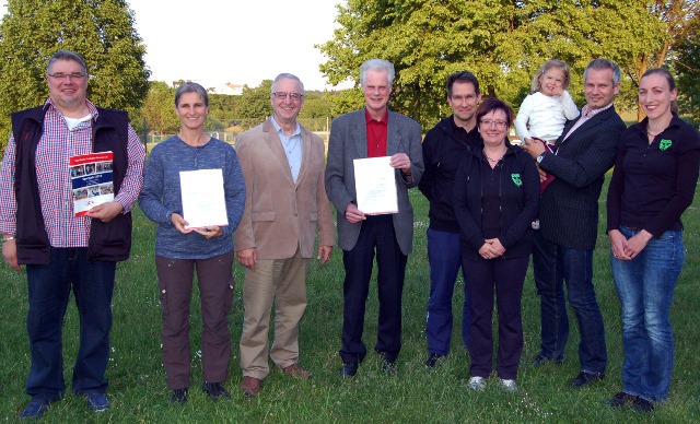 Der Sportkreisvorsitzende unterstrich, dass eine Bescheidübergabe für ihn ein erfreulicher Anlass sei. „Wie Sie sehen, lohnt es immer, einen Förderantrag beim lsb h zu stellen“, erklärte Schmidt. „Die Unterstützung durch den lsb h ist für unsere Vereine nach wie vor eine ,sichere Bank’.“ So ermöglichten es den Vereinen, Sportstätten zu bauen, zu renovieren und zu modernisieren. Erfreut konnte der Sportkreisvorsitzende berichten, dass der Bewilligungszeitraum von lsb h jetzt auf 12 Monate verkürzt worden sei, 2016 würden sogar sechs Monate angestrebt. Zudem lud er die beiden Vereine zum Sportkreistag am 10. Juni in Bad Schwalbach ein. „Die Teilnahme sollte für jeden Verein Pflicht sein“, so Schmidt, der zudem dem TuS Beuerbach dafür dankte, dass er die Gastgeberrolle übernommen habe.