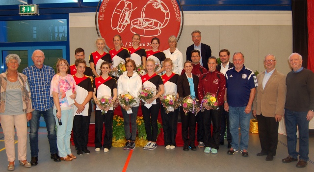 Rheingau-Taunus-Kreis/Taunusstein – (MRM) Großer Bahnhof für die Taunussteiner Rhönradturnerinnen und -turner, die bei der Weltmeisterschaft in Italien mit acht Gold-, sieben Silber- und einer Bronzemedaille und weiteren guten Platzierungen sehr erfolgreich abgeschnitten haben. Im Rahmen der deutschen Jugendmeisterschaften fanden sich zahlreiche Gratulanten ein, darunter der Vorsitzende des Sportkreises Rheingau-Taunus Manfred Schmidt, um den Sportlern und Trainern ihre Glückwünsche zu überbringen.