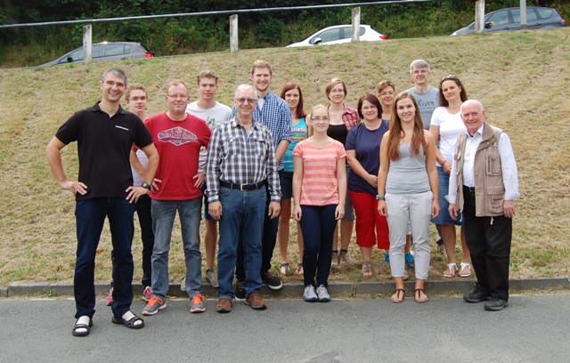 Manfred Schmidt (mitte vorne), mit Seminarleiter Heiko Heger (li.), Berthold Müller (re), Lena Herke (2.v.r. vorne) und Dorian Massmig (re. hinter M. Schmidt) und den anderen Seminarteilnehmern beim Gruppenfoto.. Foto: Sportkreis Rheingau-Taunus
