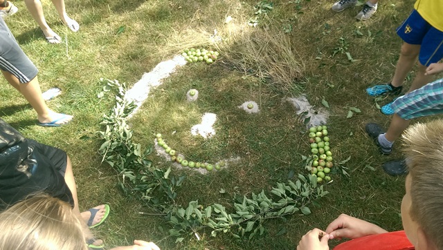 Am Donnerstag wurde gepackt, da das Abholen nach dem Mittagessen stattfand. Vormittags fand gemeinsam mit den Kindern die Auswertung der erlebten Tage statt. Sie sollten die Erlebnisse mit Naturmaterialien nachbilden, wobei wirklich bunte und kreative Bilder entstanden.