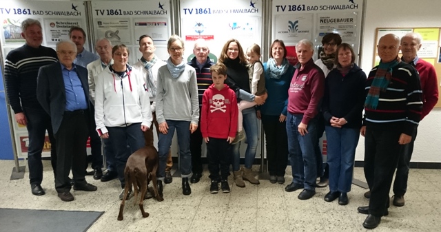 In einer toll organisierten kleinen Feierstunde übergaben die Sportabzeichenprüferinnen und –prüfer Caroline Ehinger, Petra Molle und Willi Ruhfass vom TV Bad Schwalbach Urkunden und Nadeln an die Erwerberinnen und Erwerber des Vereins. Dirk Franzen vom Vorstand dankte den Prüfern und übergab ein Bandmaß und Bälle. Helmut Heisen (vorne 3. v.r.) überbrachte die Grüße des Sportkreises Rheingau-Taunus und erhielt bei dieser Gelegenheit seine eigene Urkunde.Foto: Willibald Ruhfass