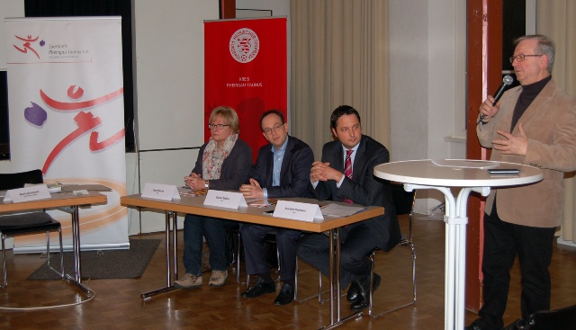 In der folgenden Fragerunde wurde deutlich, dass alle betonten, sie seien gegen die Einführung von Hallennutzungsgebühren trotz der Auflagen des Schutzschirmes und dass sie eine Gegenfinanzierung für denkbar halten. Auch darüber, dass der Sport bei den Themen Flüchtlinge und Integration hervorragende Arbeit leiste, gab es einmütige Zustimmung.