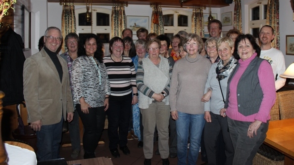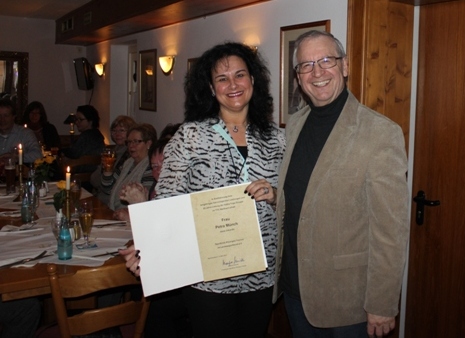 Petra Münch vom TTC Wallbach leitet seit 20 Jahren die Hatha-Yoga Gruppe, die ihr 30jähriges Bestehen begehen und feiern konnte. Dieses außergewöhnliche Engagement wurde in einer kleinen Feierstunde, der eine Altstadtbegehung in Idstein und Hexenturmbesteigung vorausging, gebührend gewürdigt. Der Vorsitzende der TTC Wallbach Andreas Zellner konnte bei seiner Dankesrede über 20 Frauen – unter ihnen auch Gründungsmitglieder - aus der Yoga Gruppe und den extra eingeladenen Sportkreisvorsitzenden Manfred Schmidt begrüßen. Schmidt dankte für die Einladung der er gerne nachgekommen sei. Er zeigte sich ebenfalls von der Leistung von Petra Münch beeindruckt und wies in seiner kurzen Laudatio darauf hin, dass der Verein auch stolz sein kann mit ihr eine Übungsleiterin zu haben, die das wichtige Siegel „Sport pro Gesundheit“ besitzt und dieses auch immer wieder erneuert. Er gratulierte Petra Münch ganz herzlich und überreichte ihr die Dankesurkunde des Sportkreises mit einem kleinen Wein Gruß, wünschte ihr weiterhin alle Gute und viel Spaß mit ihrer Yoga Gruppe wie auch als Abteilungsleiterin Fitness und Freizeitsport. Anschließend wurde in fröhlicher Runde die eine oder andere Begebenheit aus den zurückliegenden 20 Jahren zum Besten gegeben. Text: Michael Hoyer