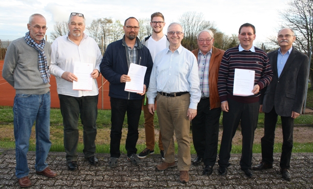 Der TC Hallgarten erhält € 853 für die Sanierung des Tennisplatz, der Schützenverein Kiedrich darf sich über € 739 für die Anschaffung von Sportgeräten freuen und die TS Geisenheim über € 1188 für die Anschaffung eines Barren. Die Förderbescheide entstammen dem Vereinsförderfond des Landessportbundes Hessen e. V. und wurden durch den zuständigen Sportkreis Rheingau-Taunus durch dessen Vorsitzenden Manfred Schmidt an die drei Vereine feierlich, mit den besten Wünschen zu einer weiterhin erfolgreichen Vereinsarbeit, übergeben. Schmidt ging weiterhin auf die Wichtigkeit der Vereinsförderung ein und dankte dem Vorsitzenden des Tennisclubs Hallgarten, Uli Wächtler, dass er das Clubhaus zur Verfügung stellte. Die Vereine dankten anschließend Schmidt und unterstrichen ebenfalls, dass die Zuschüsse aus dem Vereinsförderfond des Landessportbundes wichtig für sie sind.
