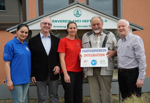 Die Verantwortlichen des Projektes, der Sportkreisvorsitzende Manfred Schmidt und der Turngauvorsitzende Rolf Byron überreichten dem Vorsitzenden des TV Heftrich Jürgen Dauber die Auszeichnung „Partnerverein Integration“. Beide unterstrichen in einer kurzen Laudatio, dass man mit dieser Auszeichnung mustergültiges Verhalten von Vereinen zum Thema Integration herausstellen und sie bestärken wolle, den eingeschlagenen Weg nachhaltig weiter zu gehen. Schmidt ermunterte den Verein, auch weiterhin die Integration und den interkulturellen Dialog zu fördern. Byron ergänzte, das überreichte Schild soll auch nach außen hin deutlich machen, wie wichtig dem Sport die Integration ist.
