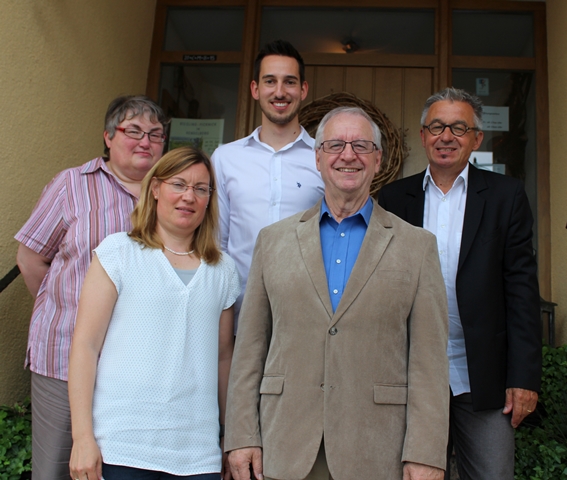v.l. Patricia Nägler (Silberne Ehrennadel), Melanie Weser (Verdienstnadel), 2. Vorsitzender Miguel Kempnich, Sportkreisvorsitzender Manfred Schmidt, Gerd Darschin (Bronzene Ehrennadel). Foto: Sabine Fladung