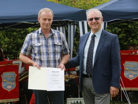 Der Sportkreis Rheingau-Taunus gratuliert dem Sportverein Lindschied zu seinem 40. Geburtstag, den er in diesem Jahr mit einem bunten Programm feiert. Sportkreisvorsitzender Manfred Schmidt grüßte besonders die Gründungsmitglieder die mit der Gründung des Vereines für Gemeinschaft und Bereicherung des Sportangebotes sorgten. Mit der Zielsetzung des Vereins, nachzulesen auf der Homepage mit den Worten: "Wir haben uns zum Ziel gesetzt, die sportliche Entwicklung von Kindern und Jugendlichen abseits vom Profisport zu fördern, wie auch die Bewegung mit Menschen jeden Alters ..." könnte der "Auftrag" eines Sportvereins nicht zutreffender beschrieben werden, so Schmidt in seiner Laudatio. Neben der Übergabe der Jubiläumsurkunde des Landessportbundes Hessen ehrte Schmidt auch ein Vereinsmitglied für seine langjährige Vereinszugehörigkeit. Wolfgang Tremper erhielt für 40 Jahre Vereinsarbeit die Verdienstnadel des Landessportbund Hessen nebst Urkunde. Text: Michael Hoyer