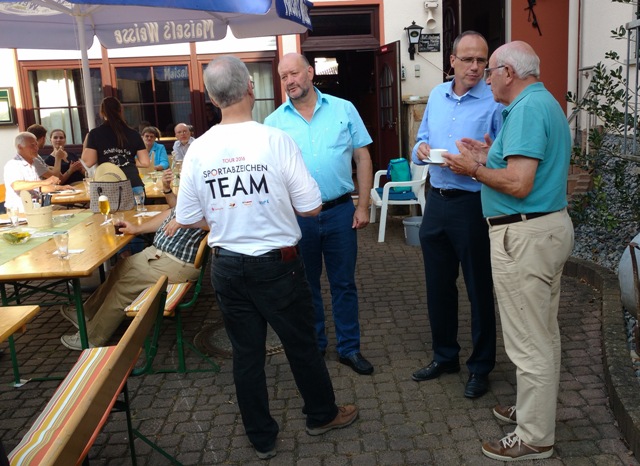 In lockerer Runde genossen die Teilnehmer herzhafte Grillspezialitäten die von Wolfgang Rauel am originellen Grillwagen zubereitet wurden, leckere Salate, kühle Getränke, sowie Kaffee und Kuchen. Natürlich kamen auch die Unterhaltung und das Fachsimpeln nicht zu kurz, wobei das Thema Sport naturgemäß im Mittelpunkt stand. Alle Anwesenden fühlten sich wohl in angenehmer Atmosphäre, bei interessanten Gesprächen und gutem Essen. Text: Michael Hoyer