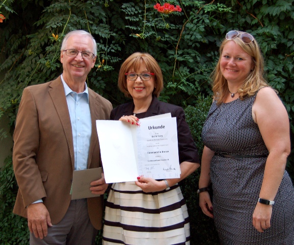 Schmidt, der zusammen mit seiner Vorstandskollegin Christina Fuchs zur Geburtstagsfeier im Rheingau eingeladen war, hatte eine Überraschung im Gepäck, nämlich eine Ehrung durch den lsb h. Er rief in seiner Laudatio in Erinnerung, dass Uschi Ferry im Jahr 2001 von seinem Vorgänger Jürgen Gerndt als Beisitzerin in den Sportkreisvorstand berufen worden war. Sie war seinerzeit zusammen mit ihm für die erfolgreichen Aktivitäten des Sportkreises auf dem Hessentag in Idstein verantwortlich. Nach der Fusion der Sportkreise Rheingau und Untertaunus sei die Jubilarin, dann zu seiner Stellvertreterin gewählt worden und seitdem im Sportkreisvorstand für die Bereiche Vortragsreihe, Sponsorensuche und organisatorische Aufgaben zuständig.