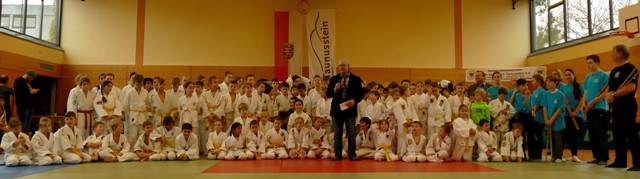 Von dem Präsidenten des Budo-Sport-Club Taunusstein, Bert Gemmerich, wurden die Teilnehmer, anwesenden Zuschauer und die Ehrengäste, Sportkreisvorsitzende des Rheingau-Taunuskreises, Manfred Schmidt und Stadtrat Alfred Hollinger herzlich begrüßt.