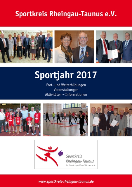 Der Sportkreis freut sich Ihnen die aktuelle Ausgabe seiner Imagebroschüre "Sportjahr 2017" vorstellen zu können. Neben einem Rückblick auf das Jahr 2016 finden Sie in der aktuellen Ausgabe wieder interessante Informationen und Hinweise auf geplante Aktivitäten 2017. Fort- und Weiterbildungen, Veranstaltungen und Aktivitäten. Sie finden Informationen rund um das Thema Sport und Vereinsarbeit, Integration, Inklusion und die Landesgartenschau 2018. Der Sportkreis gibt einen Einblick über seine Tätigkeiten und stellt wieder Vereine und Verbände aus unserem Sportkreis vor.