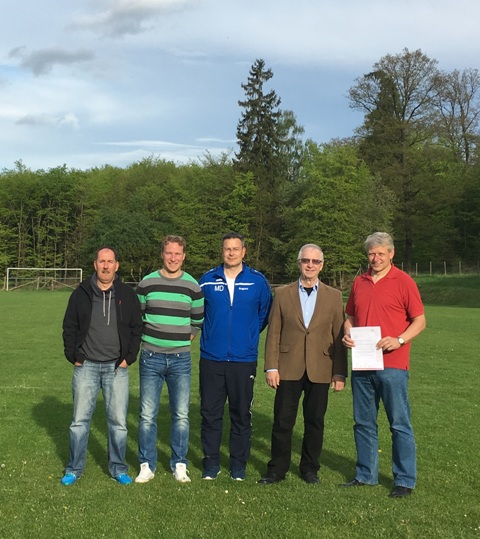 v.l. Michael Jungmann (Jugendleiter), Rene Bernhard (2. Vorsitzender), Markus Dick (Kassenwart), Manfred Schmidt (Sportkreisvorsitzender), Holger Litzius (1. Vorsitzender) Foto: Markus Dick