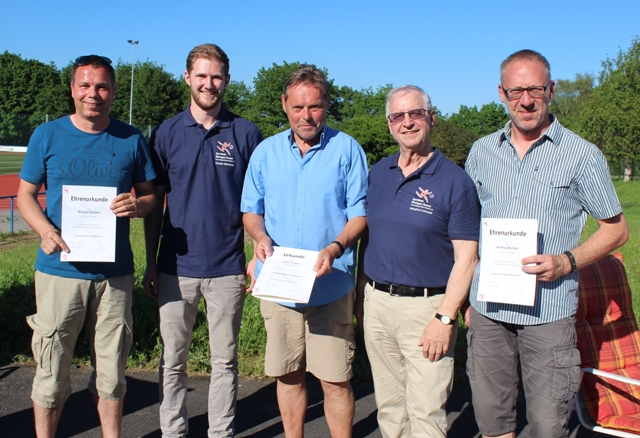 - Michael Palinkas, aktuell 2. Vorsitzender, Jugendleiter, Jugendtrainer, Seniorentrainer (Ehrenurkunde und Geschenknadel)