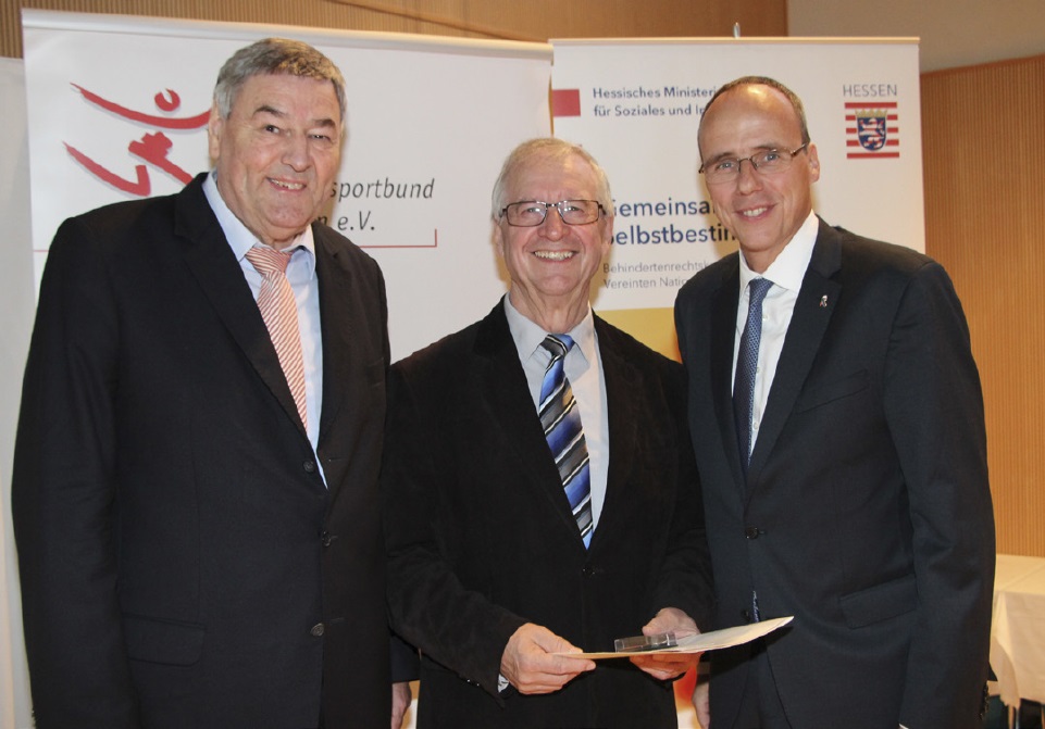 v.l. Dr. Rolf Müller (Präsident Landessportbund Hessen), Manfred Schmidt (Sportkreisvorsitzender), Peter Beuth (Hessischer Innen- und Sportminister) Foto: Ralf Wächter