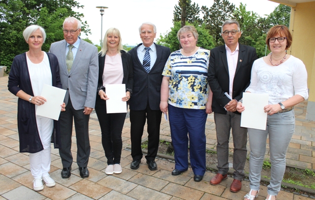 v.l. Yasmin Prinz, Karl-Heinz Petry (Ehrenvorsitzender Turngaus Süd-Nassau), Alexandra Nitze, Helmut Heisen (2. Vorsitzender Sportkreises Rheingau-Taunus), Patricia Nägler (Sportwartin TG Hallgarten), Gerd Darschin (1. Vorsitzender TG Hallgarten), Andrea Wagner (Pressewartin TG Hallgarten), Foto: Andrea Wagner