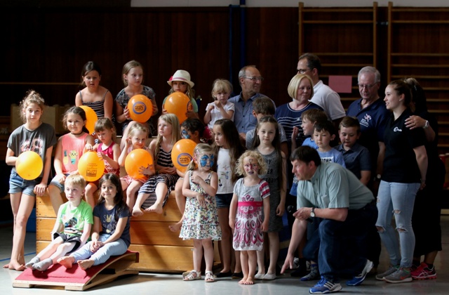 Bürgermeister und Sportkreisvorsitzender zusammen mit Kindern und Aktiven des Vereins. Foto: Silvia Bräuer