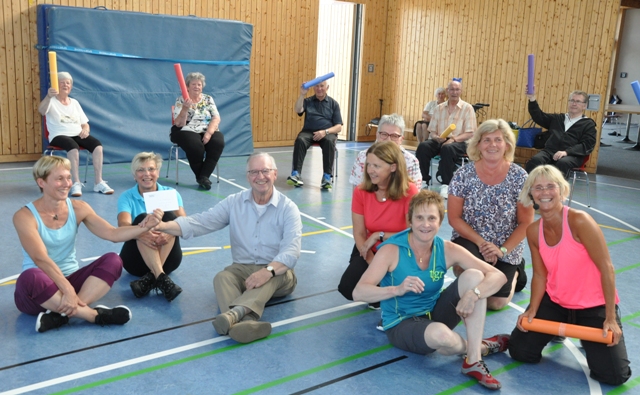 Manfred Schmidt der die Zuwendung während einer Übungsstunde überreichte zeigte sich begeistert von der vorbildlichen Abteilung in der die Freude am Sport deutlich zu erkennen sei. Mehrere Auszeichnungen des Vereins bestätigten die Angebote des Vereins in dem Inklusion gelebt wird. Auch wenn Gleichgewicht, Koordination, Gangsicherheit eingeschränkt sind, kann man Spaß an Bewegung und Sport erleben, etwas für die Gesundheit tun, vergessene Muskeln wecken, den Stoffwechsel steigern und vieles mehr. Am Sportunterricht teilnehmen können Frauen und Männer von 10 bis 100 Jahren. Angesprochen sind Menschen, die langfristig eine Gehhilfe benötigen. Das Ziel der Gruppe "Pro-Mobil" ist die Schulung der Gleichgewichtsfähigkeiten, Aktivierung von Kraft und Ausdauer, Förderung und Sicherung von Bewegungsfähigkeiten sowie Erhaltung der Selbstständigkeit und Gesundheit. Natürlich gehören auch Spaß und Kommunikation dazu. Interessenten können sich direkt an die Turngemeinde Rüdesheim wenden. Text: Michael Hoyer