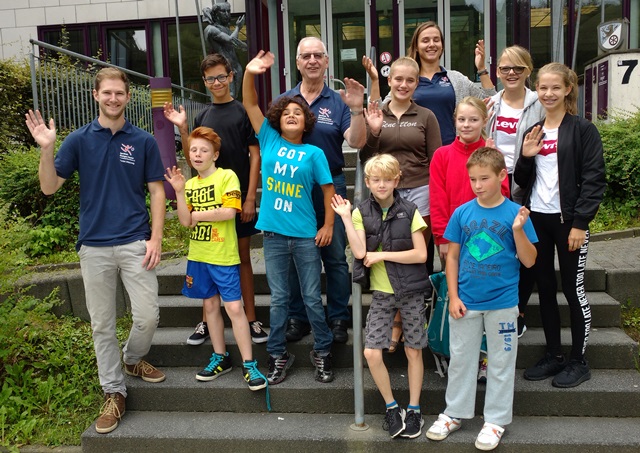 Die Jugendwarte Dorian Massmig (li) und Lena Herke (hinten Mitte) zusammen mit Sportkreisvorsitzenden Manfred Schmidt beim Gruppenfoto vor der Abfahrt. Foto: Michael Hoyer