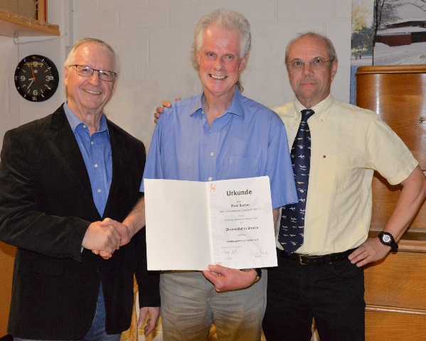 Unter dem stürmischen Beifall der Vereinsmitglieder überreichte Schmidt Barton die hohe Auszeichnung des lsb h und gratulierte ihm herzlich dazu. Barton, der von dieser besonderen Auszeichnung überrascht worden war, bedankte sich für die große Ehre. Text: Michael Reitz