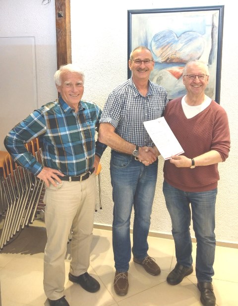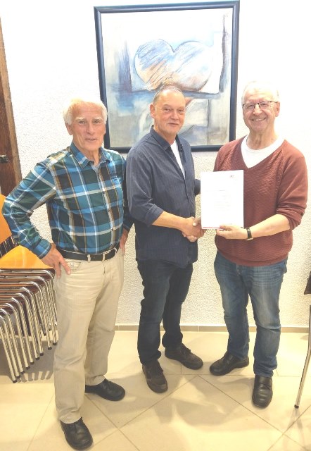 v.l. Helmut Heisen (2. Vorsitzender Sportkreis), Klaus Seifert (TG Winkel), Manfred Schmidt (Sportkreisvorsitzender) Foto: Doriam Massmig