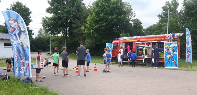 Zusätzlich zu den eher sportartspezifischen Stationen war auch die freiwillige Feuerwehr und die Sportjugend Hessen mit einem Sportmobil vertreten.