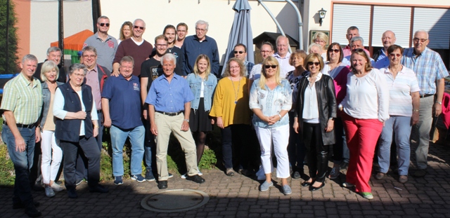 Zum Sommerfest des Sportkreises Rheingau-Taunus konnte der Sportkreisvorsitzende Manfred Schmidt (9.v l.) nicht nur seine Vorstandskolleginnen und -kollegen nebst Partnern, sondern u. a. auch Landrat Frank Kilian, (6.v.l.) und Bürgermeister Udo Scheliga (3.v.r.) als Ehrengäste begrüßen. Foto: Christina Fuchs