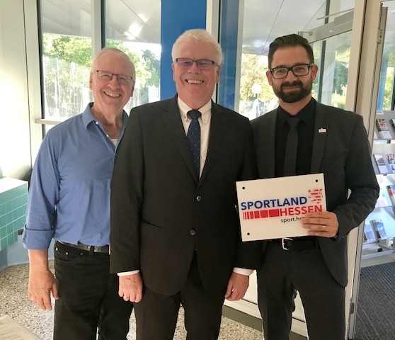 v.l. Manfred Schmidt (Sportkreisvorsitzender), Werner Koch (Staatssekretär), Christian Aßmann (Bürgermeister Geisenheim). Foto: Christian Aßmann