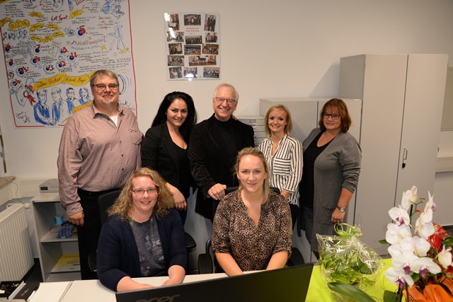 Mitarbeiter, Ehemalige und Vorstandsvertreter, v.l. Michael Hoyer, Simone Moser, Meral Qajraoui, Manfred Schmidt, Monika Kilian, Marie Paßmann, Sabine Thomas. Foto: Michael Reitz