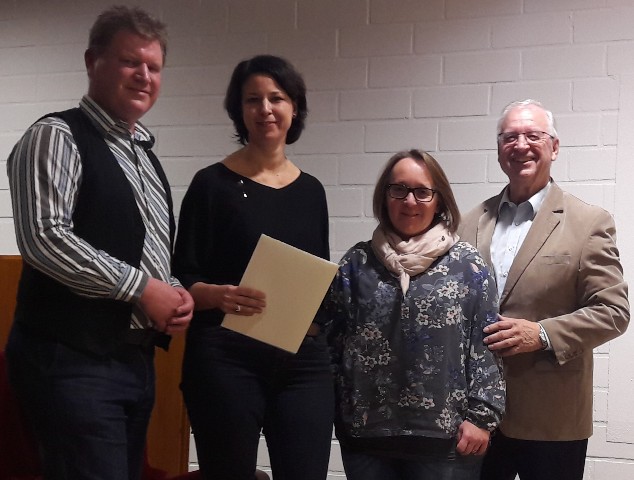 v.l. Nicolei Löw (Vorsitzender TV Bärstadt), Lydia Wilhelm (2. Beisitzerin), Bettina Hirschmann (Kassiererin), Manfred Schmidt. Foto: Erik Wilhelm