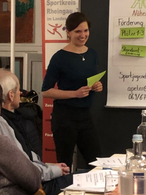 Das Wort wurde dann an Annamaria Peter von der Sportjugend Hessen übergeben. Sie berichtete über die Inhalte der Übungsleiterausbildung welche 2019/2020 im Rheingau Taunus Kreis für Frauen und Männer mit und ohne Migrationshintergrund angeboten wird.
