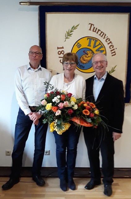 v.l. Wolfgang Bremer (2. Vors. TV Wehen), Ute Lenk, Manfred Schmidt (Sportkreisvorsitzender). Foto: Els Netzel