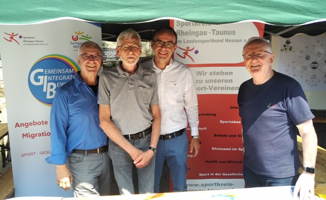 v.l. Manfred Schmidt (Sportkreisvorsitzender), Gerhard Krum (ehem. Idsteiner Bürgermeister), Christian Herfurth (Bürgermeister Stad Idstein), Rolf Byron (Ehrenvorsitzender Turngau Mitteltaunus) Foto: Manfred Schmidt