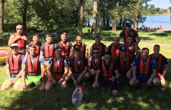 Die Sportlergruppe des SV Wisper 1925 Lorch zum Gruppenfoto vor Ihrer Rafting Tour. Foto: Steffen Diefenbach