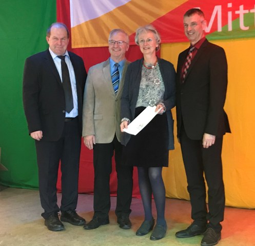 v.l. Frank Stübing (Vorsitzender Turngau Mitteltaunus), Manfred Schmidt (Sportkreisvorsitzender), Sabine Gubo (1. Vors. Tai Chi Verein), Frank Kilian (Landrat Rheingau-Taunus-Kreis). Foto: Mathias Gubo