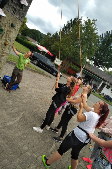 Spaß an der Kletterwand. Foto Helmut Heisen