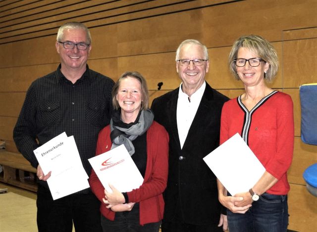 v.l. Bernd Höfer, Anja Weyhofen, Manfred Schmidt (Sportkreisvorsitzender), Sabine Gretz. Foto: Erhard Böhme