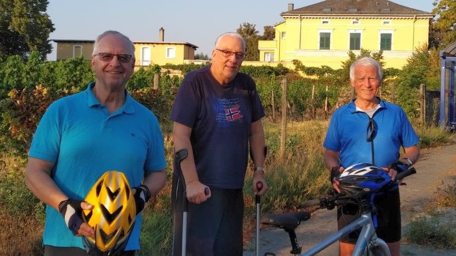Am Ziel in Geisenheim v.l. Sportkreisvorsitzender Manfred Schmidt, Jürgen Kröckel (Sportabzeichenobmann), Helmut Heisen (2. Vors. Sportkreis). Foto: Helmut Heisen