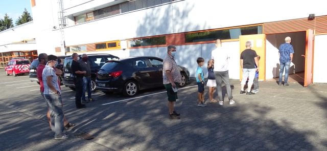 Zahlreiche Vereinsvertreter holten die Desinfektionsmittel auch in Eltville ab. Foto: Michael Reitz