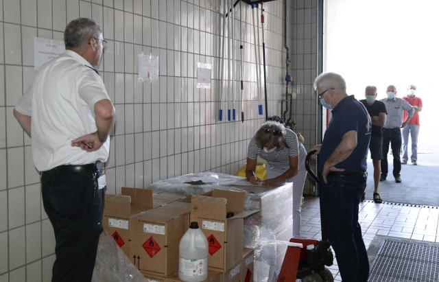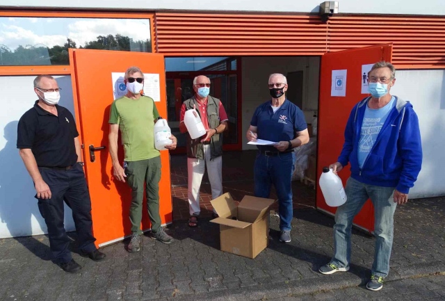 Möglich war dies auch durch die Unterstützung von Rainer Oswald vom Brandschutzamt des Kreises. Die Feuerwehren in Idstein und Eltville durften dem Sportkreis geeignete Räumlichkeiten zur Lagerung zur Verfügung stellen. Je nach Größe und Sportangebot im Verein wurden entsprechende Mengen in Form von 2,5 Liter und 5 Liter Gebinden gerecht verteilt. Der Sportkreisvorstand war erstaunt, dass sich so schnell, so zahlreiche Vereine zur Ausgabe angemeldet hatten. Ein Zeichen dafür, dass es einen großen Bedarf bei den Sportvereinen gibt.
