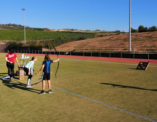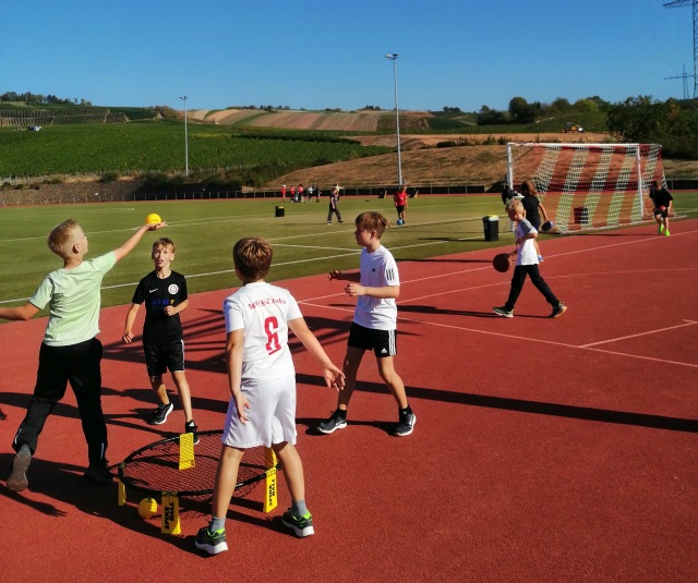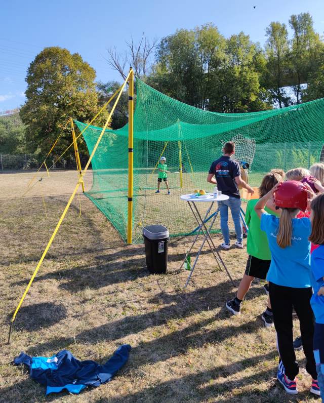 Teamer*innen der Sportjugend Hessen waren mit dem Spielemobil und Minimobil an die Walluftalschule und das Gymnasium Eltville gekommen. Die Walluftalschule ist nicht nur bekannt als „Gesundheitsfördernde Schule“ sondern auch als besonders sportaffine Schule, was sie mit der Teilnahme an der „Jugend-Road-show“ wieder unter Beweis stellte. Auch die Sportklassen des Gymnasiums Eltville waren voller Tatendrang engagiert und ausdauernd dabei und konnten neue Sportarten, wie Baseball, Bogenschießen oder auch Trendsportarten wie Spikeball und Kan Jam ausprobieren. Auch beide Schulen waren begeistert und sehr kooperativ bei Planung und Durchführung der Veranstaltung.