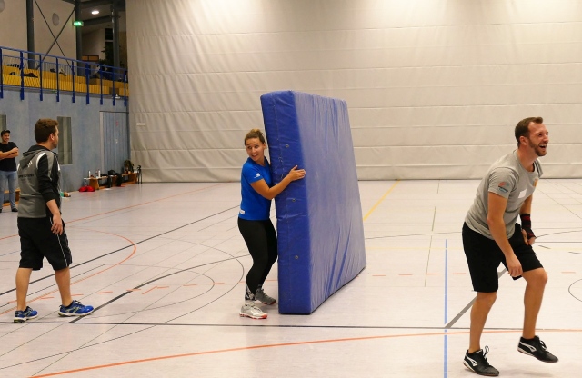 Jugendwartin Lena Herke beim Aufbau, rechts neben Ihr Jonas Kix (SKJ Schwalm-Eder). Foto: Christian Will (SJH)