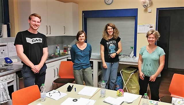 Vereinsgespräch mit dem TV Hahn im Sommer 2020, v.L. Vincent Mihm (Sportkreis Mitarbeiter), Petra Mayer-Kunz, Anke Loskant (1. Vors.), Julia Hannappel (alle TV Hahn). Foto: Manfred Schmidt