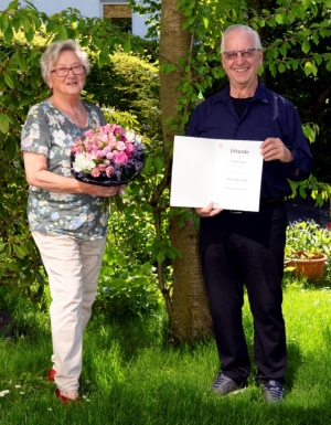 Taunusstein – (MRM) Überraschenden Besuch erhielt kürzlich Christa Porten, Sportwartin des Sportkreises Rheingau-Taunus. Der Sportkreisvorsitzende Manfred Schmidt schaute vorbei, um seine langjährige Vorstandskollegin mit der Goldenen Ehrennadel des Landessportbundes Hessen (lsb h) auszuzeichnen und ihr nachträglich zum 80. Geburtstag einen Blumenstrauß nebst Wertgutschein zu überreichen.